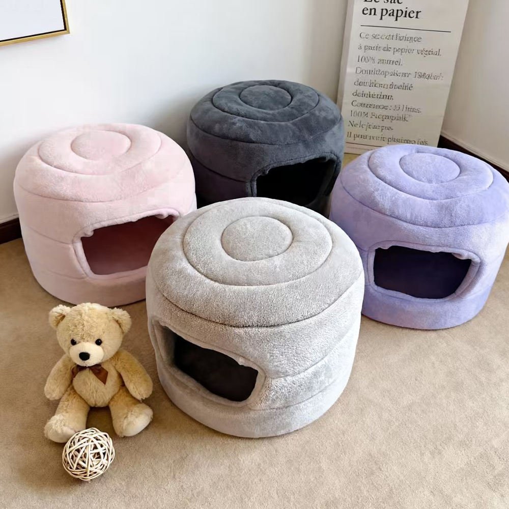 The rounded shape of the cat house creates an inviting cocoon, providing a sense of security and comfort perfect for cats who love to relax in a protected space.